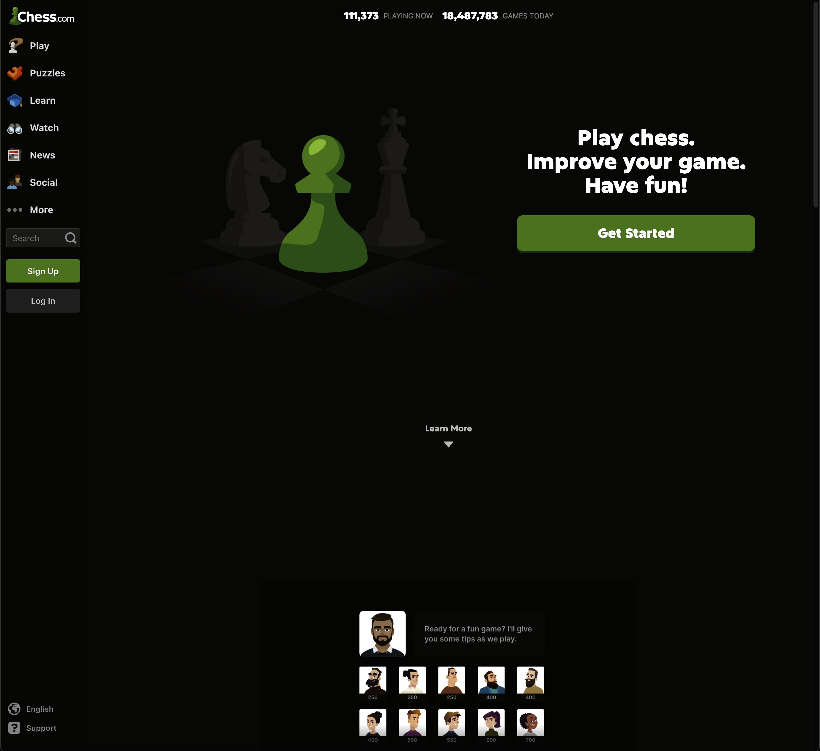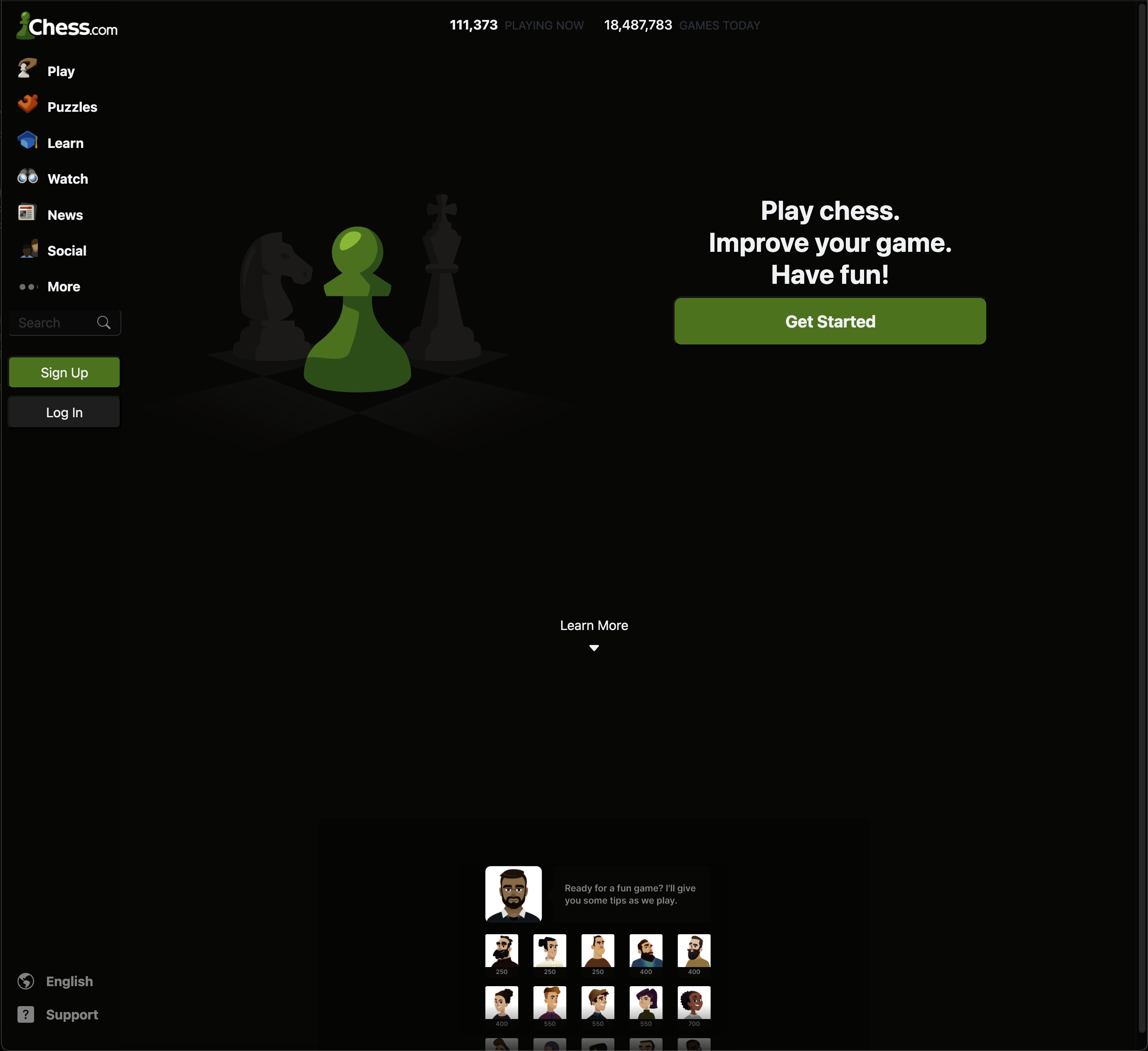Recently, I utilized Bootstrap 5 to recreate the Chess.com website. Coding up this website was challenging since it implements a vertical navbar on the left side of the page, which is different from the websites we had practiced recreating in class. Ultimately, I utilized Bootstrap’s grid layout to handle the spacing. Although it isn’t exactly on the dot, the following is the result: